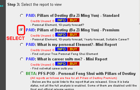 - Select the PAID: Pillars of Destiny (Ba Zi Ming Yun) - Premium